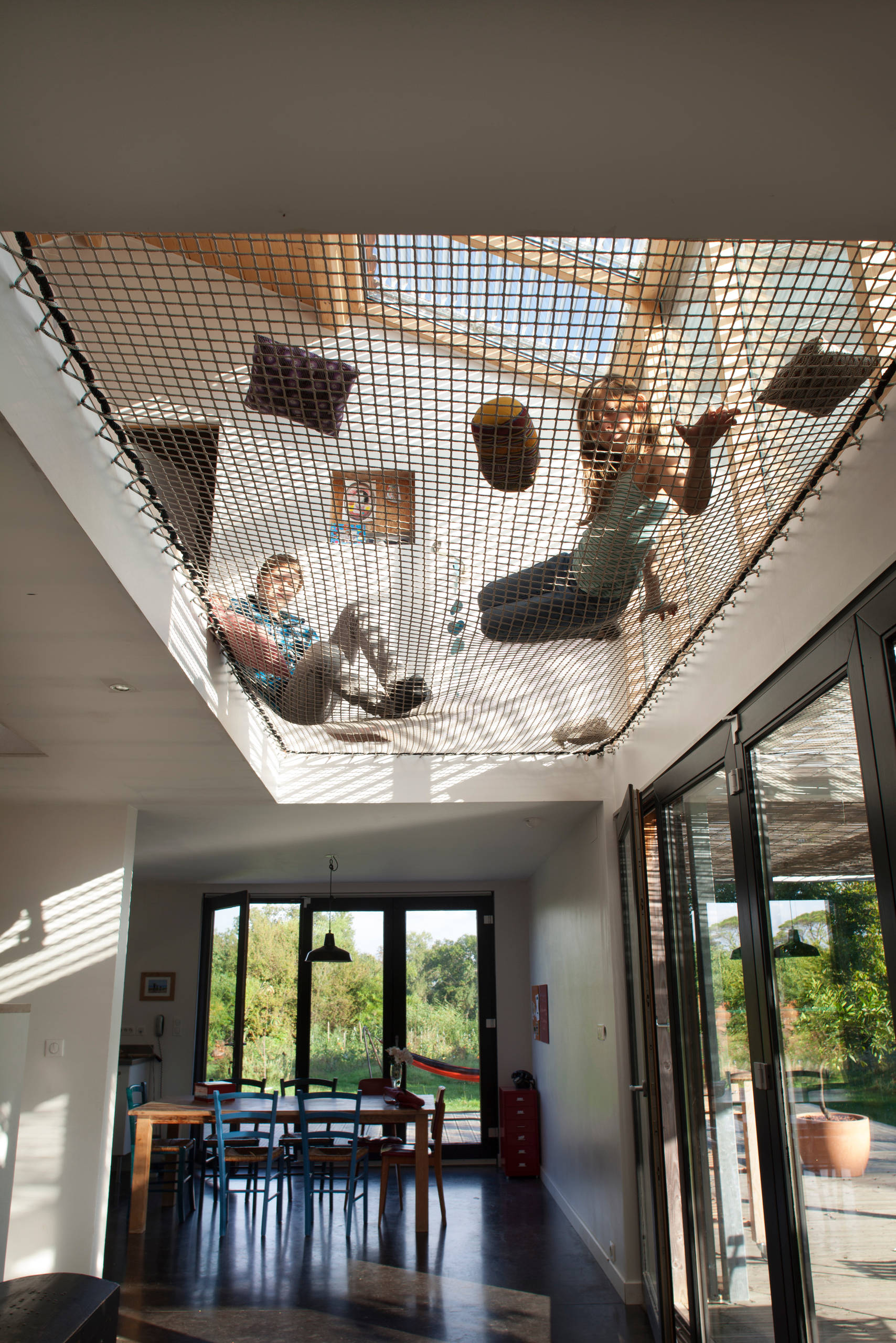 Création d’espaces détente suspendus, garde-corps, zones de repos et solutions sécurisées pour enfants.